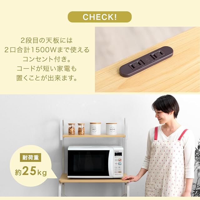 【耐荷重】底板:約20kg 棚板:約10kg 天板(コンセント付き):約25kg 天板(上部):約10kg【耐熱温度】約180℃