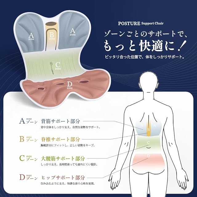 【業界最長24ケ月保証・安心の品質】豊富なカラーバリエーションで、ブラック、グレー、ピンクとブルーの4色からご自由にお選びいただけます。スタイリッシュなデザインと実用性を兼ね備えたこの姿勢矯正 椅子は、誕生日、母の日・父の日、クリスマス、入学・卒業祝いなど、特別な日のギフトにぴったりです。健康的な姿勢をサポートし、長時間のデスクワークやリラックスタイムを快適にすることで、大切な方に「健康」と「快適さ」を贈ることができます。※製品についてご質問がある場合は、どうぞメールでお問い合わせください。平日の24時間以内に返信いたします。返品と返金のサービスもご提供しています。※座り方のポイント:お尻を椅子の一番奥まで深く座ることが重要です。浅く座ると本製品のサポート効果を十分に発揮できません。深く腰掛けることで腰がしっかりと支えられ、自然と上半身が真っ直ぐに整います。【ご注意】長時間座り続ける場合、個人差によりお尻に痛みを感じることがあるかもしれません。その際はクッションを併用することで、より快適にご利用いただけます。