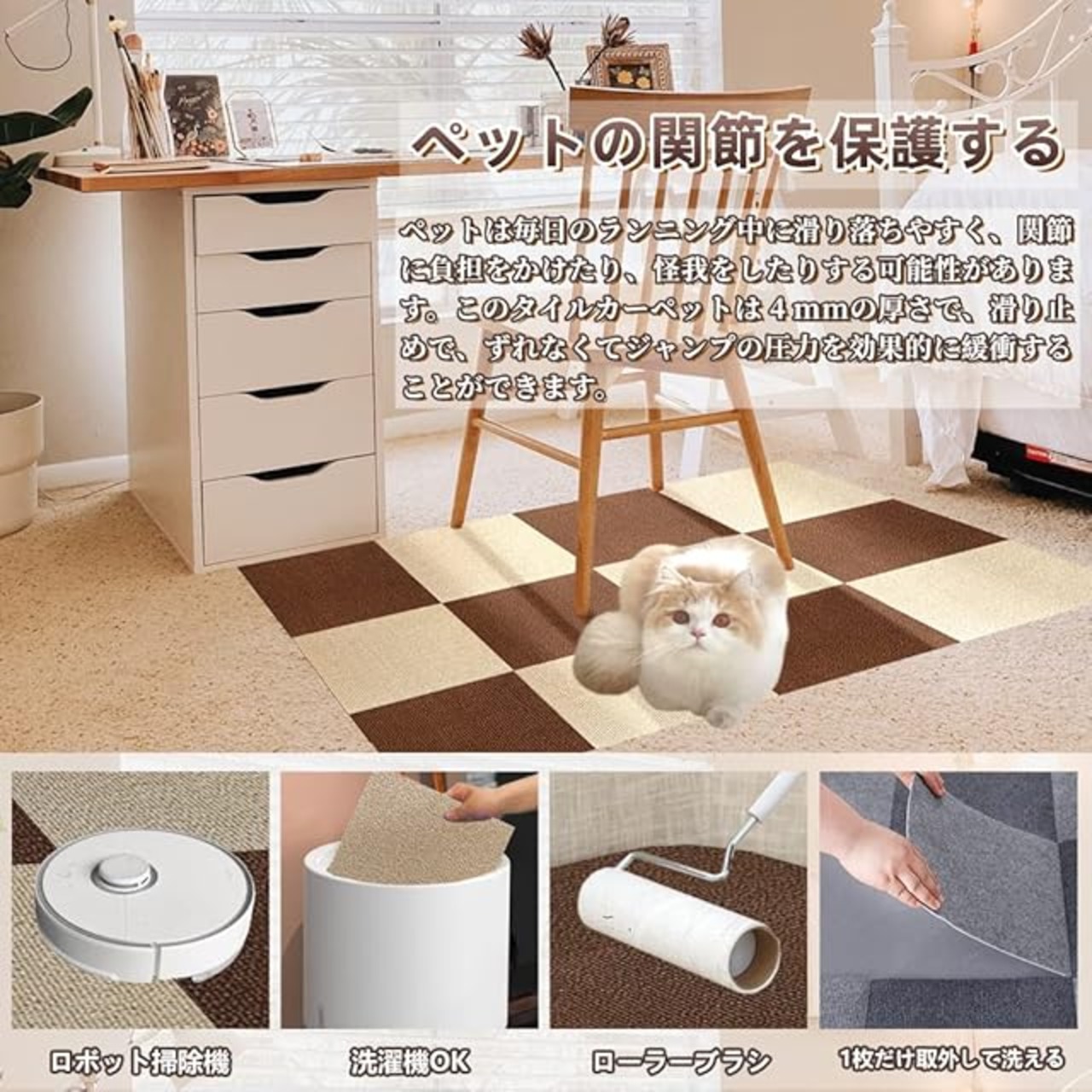 タイルマット 吸着マット タイルカーペット ジョイントマット ズレない 60枚 防音 洗える 滑り止め フロアマット 防臭 抗菌 ズレない 保温 滑り止め パネルマット 床暖房対応 30*30cm フローリングマット 賃貸/家庭/業務用 お子様・お年寄り・ペット猫犬滑り止め対策【ダークブルー・60枚】