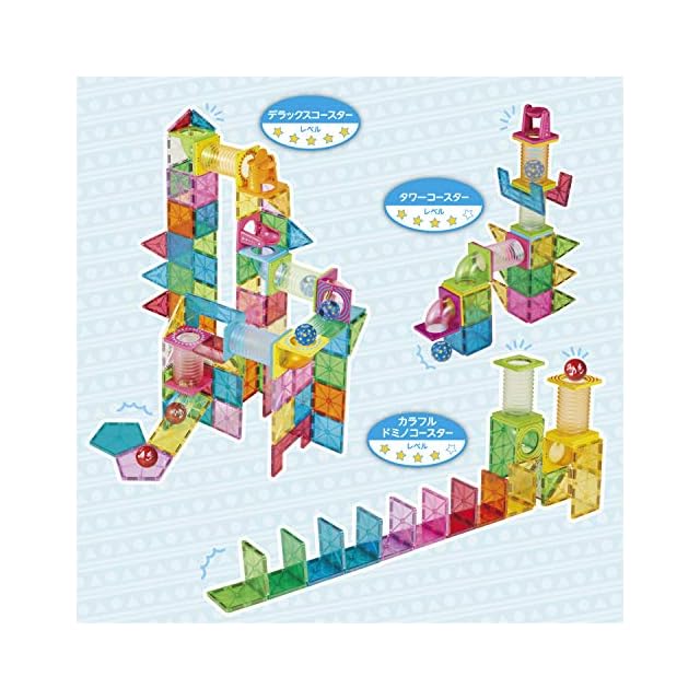 パーツたっぷりで作れるコースターは創造力次第で無限大。年齢に合わせて長く遊べます。