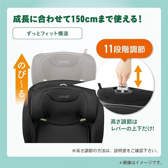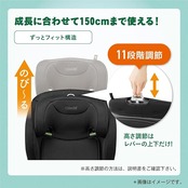 ヘッドサポートの位置は上下に動かすことができるので、身長150cmまで成長に合わせて使えるロングユース設計。