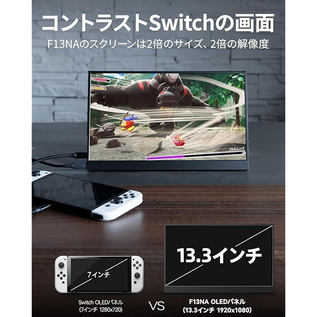 Intehill モバイルモニター 13.3インチ 有機el モニター OLEDパネル自発光 1080P 10Bit DCI-P3 100% 100000:1高輝度 HDR対応 ゲーミングモニター USB Type-C ミニHDMIポート搭載 Switch モニター F13NA | primer