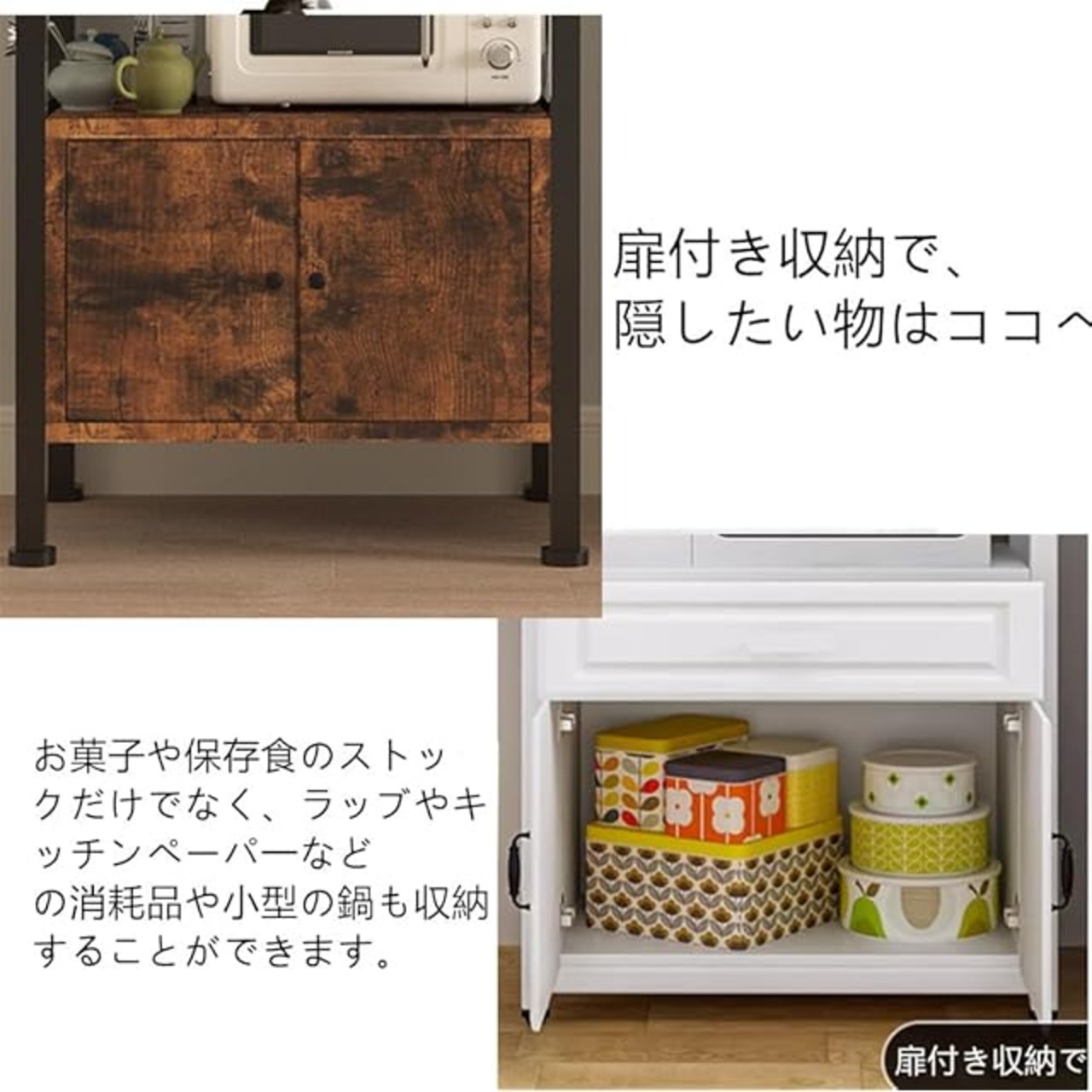 ZXD レンジラック 幅60レンジ台 5階物置戸棚付き扉 電子レンジラック 大型レンジ対応キッチンラック ビンテージ