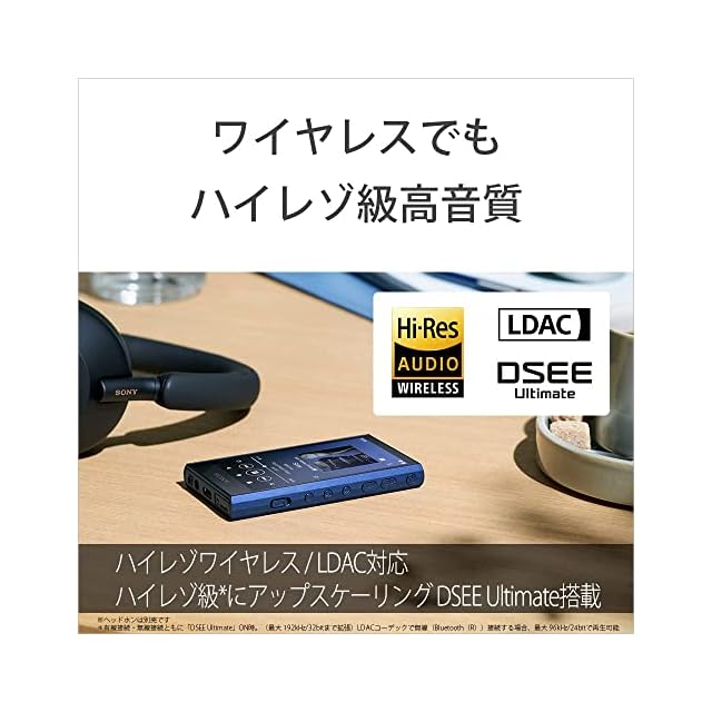 あらゆる音源を有線でも、ワイヤレスでも、高音質で楽しめる CD音源やダウンロード購入した楽曲、ストリーミングサービスで配信されている楽曲などあらゆる音源を「音楽専用機」ならではの高音質で再生。ウォークマンが長年培ってきたフルデジタルアンプの技術を結集した「S-Master HX」やこだわりの厳選パーツなど、コンパクトサイズながらスマートフォンにはない高音質に特化した本体設計を追求。また、有線接続時/ワイヤレス接続時にかかわらずAIが楽曲のタイプを解析し自動的に最適なアップスケーリングをする「DSEE Ultimate」により、普段スマートフォンで聴いていた音楽もハイレゾ級高音質で楽しむことができます。