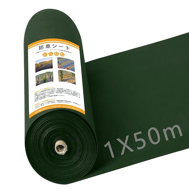GreenGarden 防草シート 1×50m 120g/㎡ 除草シート 不織布 固定ピン50本と黒丸50枚付き 厚手 高透水性 UV耐候剤配合 親水剤入 高耐久 高密度 グリーン (1*50m) | primer