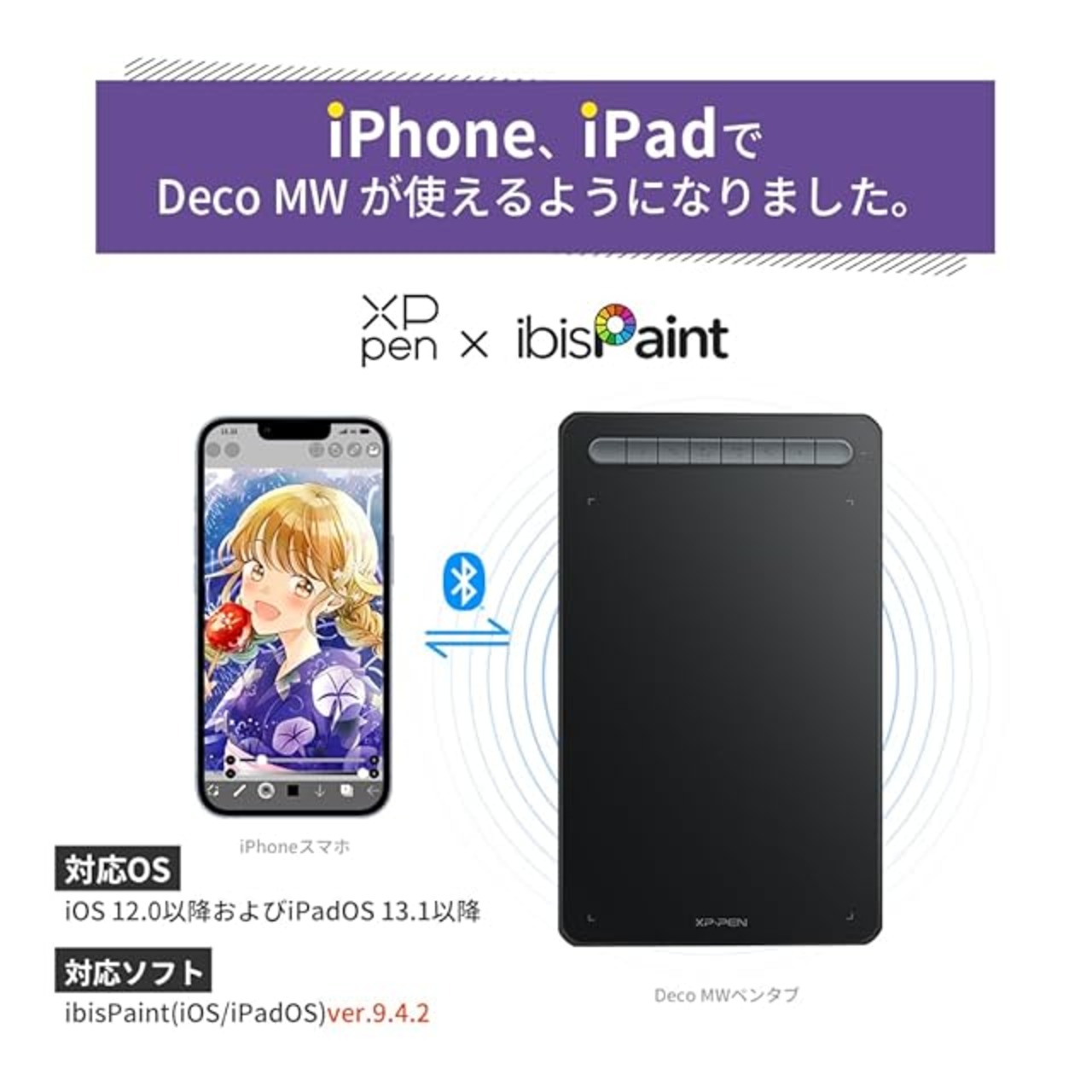 XPPen ペンタブ Bluetooth ワイヤレス接続 8x5インチ X3ペン 傾き検知 ペンタブレット 板タブ スマホ対応 イラスト テレワーク お絵描ソフト付 iPhoneのibisPaint Android Windows Mac Chromebookに対応 Deco MW イラコン記念版 ブラック