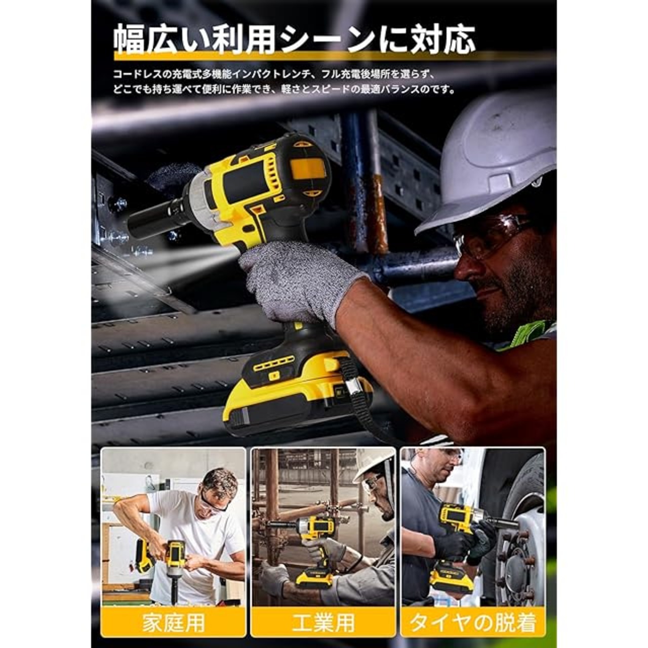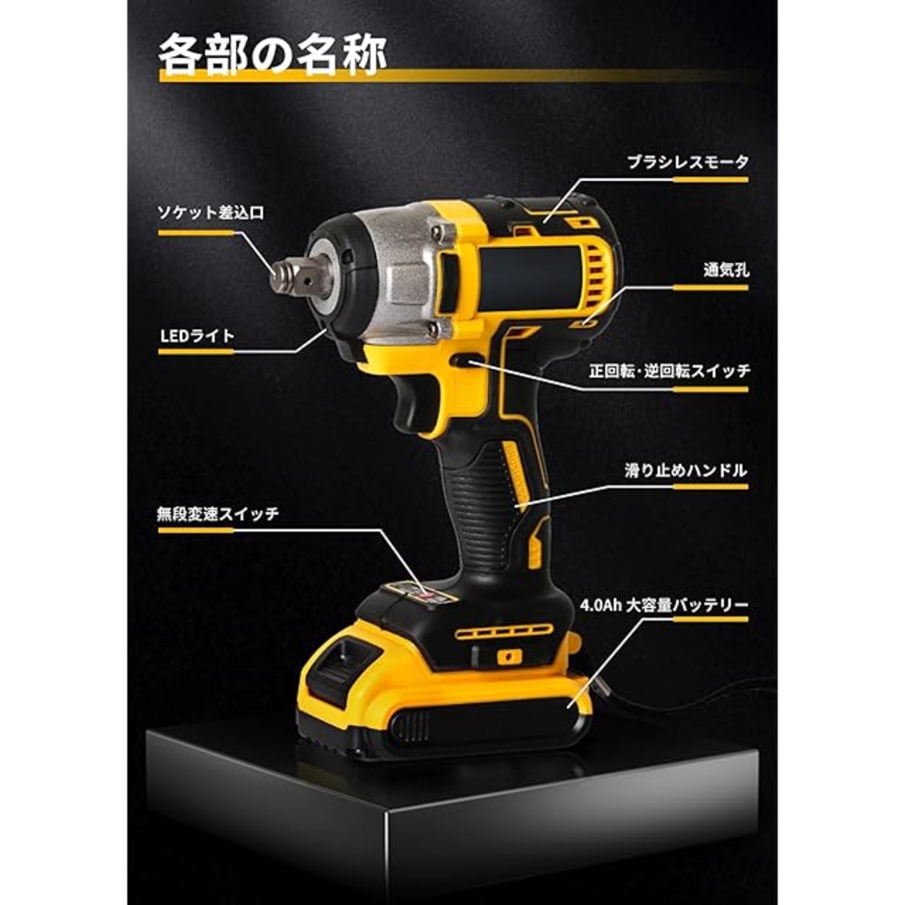 SUFE 電動インパクトレンチ 充電式 タイヤ交換 インパクト強力 600N.m ブラシレスモーター 4000mAhバッテリー*2 ソケット7本 正逆切替 1/2インチ 無断変速 自動停止モード 自動車の修理 ナットの締め付け ボルトの緩み 過負荷・過熱・放電保護 軽量 車用 コードレス 日本語説明書付き