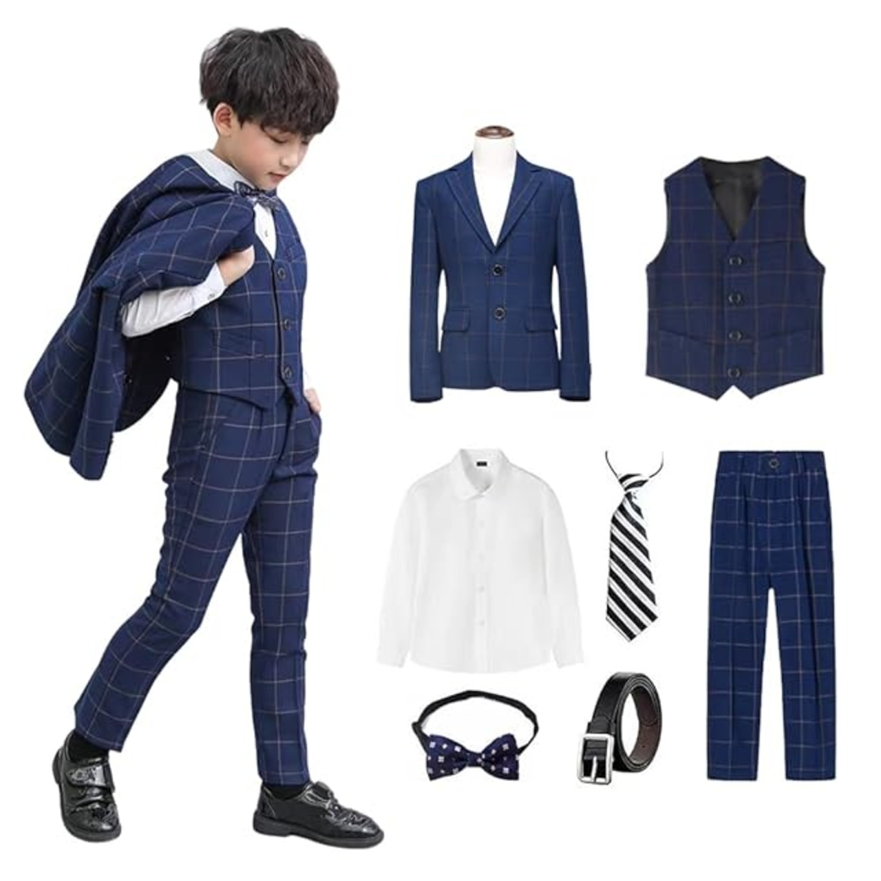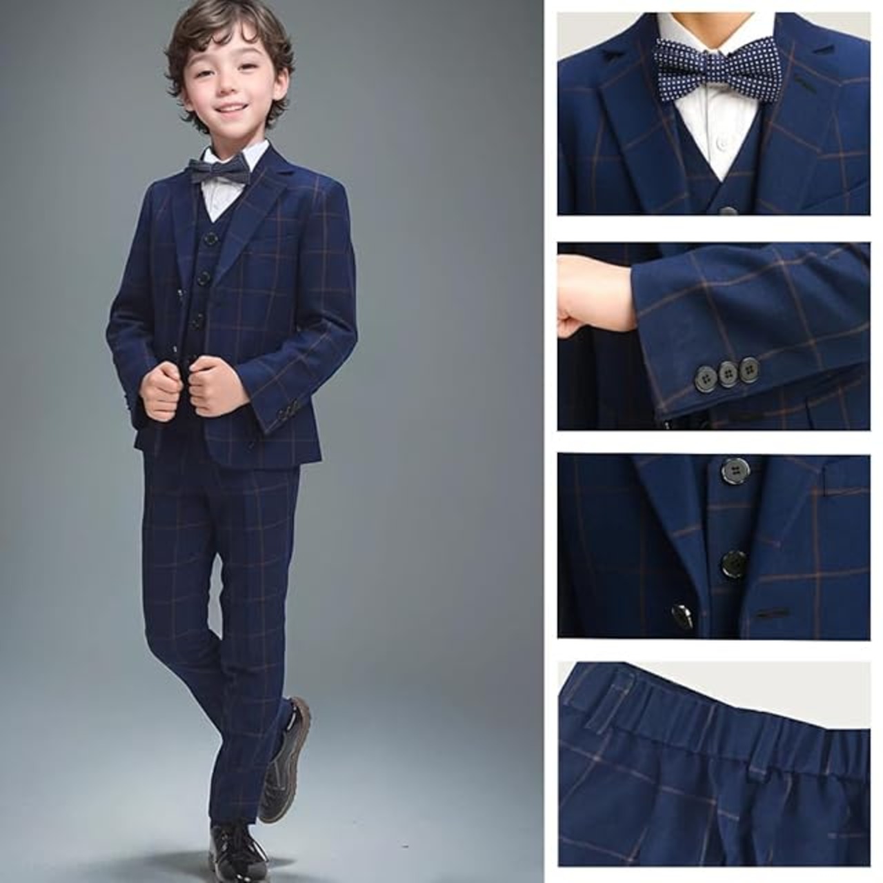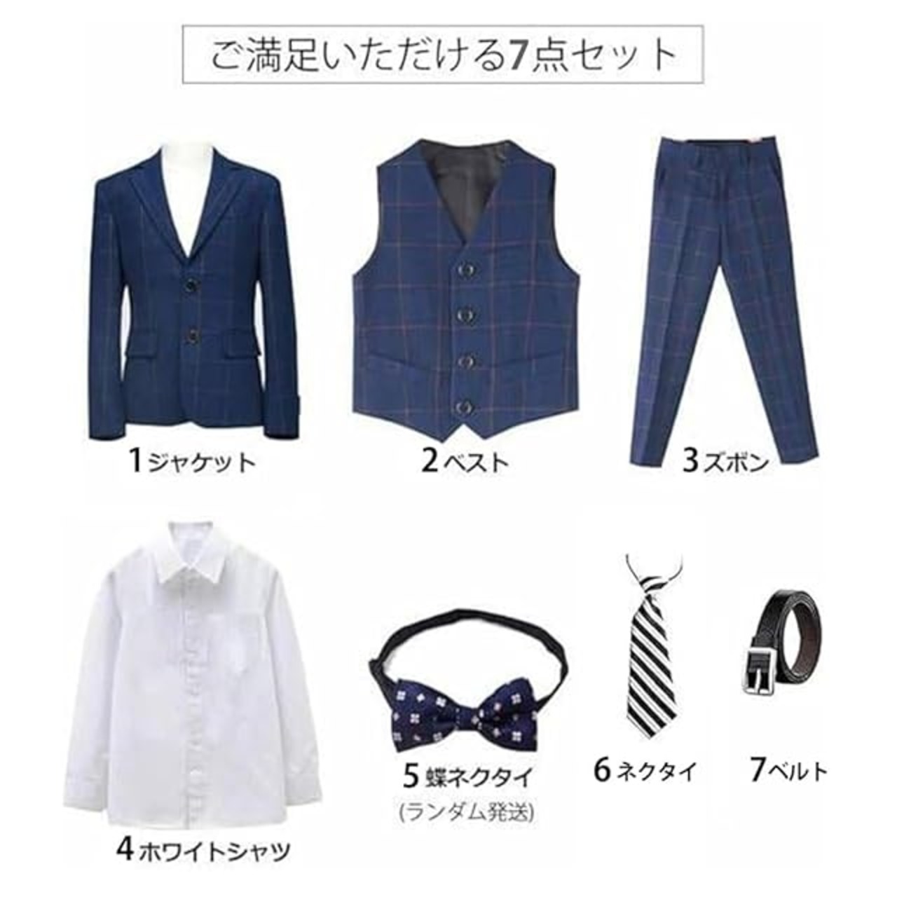 【7点セット内容】ジャケット、ベスト、シャツ、ズボン、蝶ネクタイ 、ベルト 、ネクタイ。お子様のためのお洒落なスーツセット。シャツ、蝶ネクタイとネクタイをランダムに出荷します。