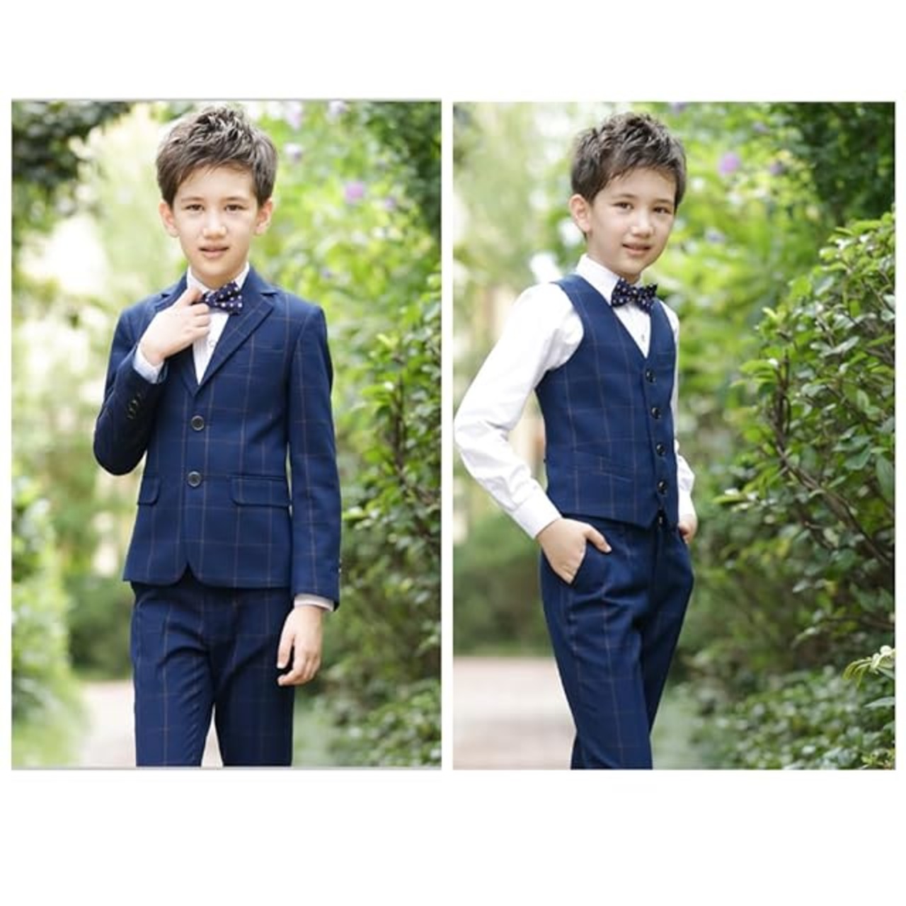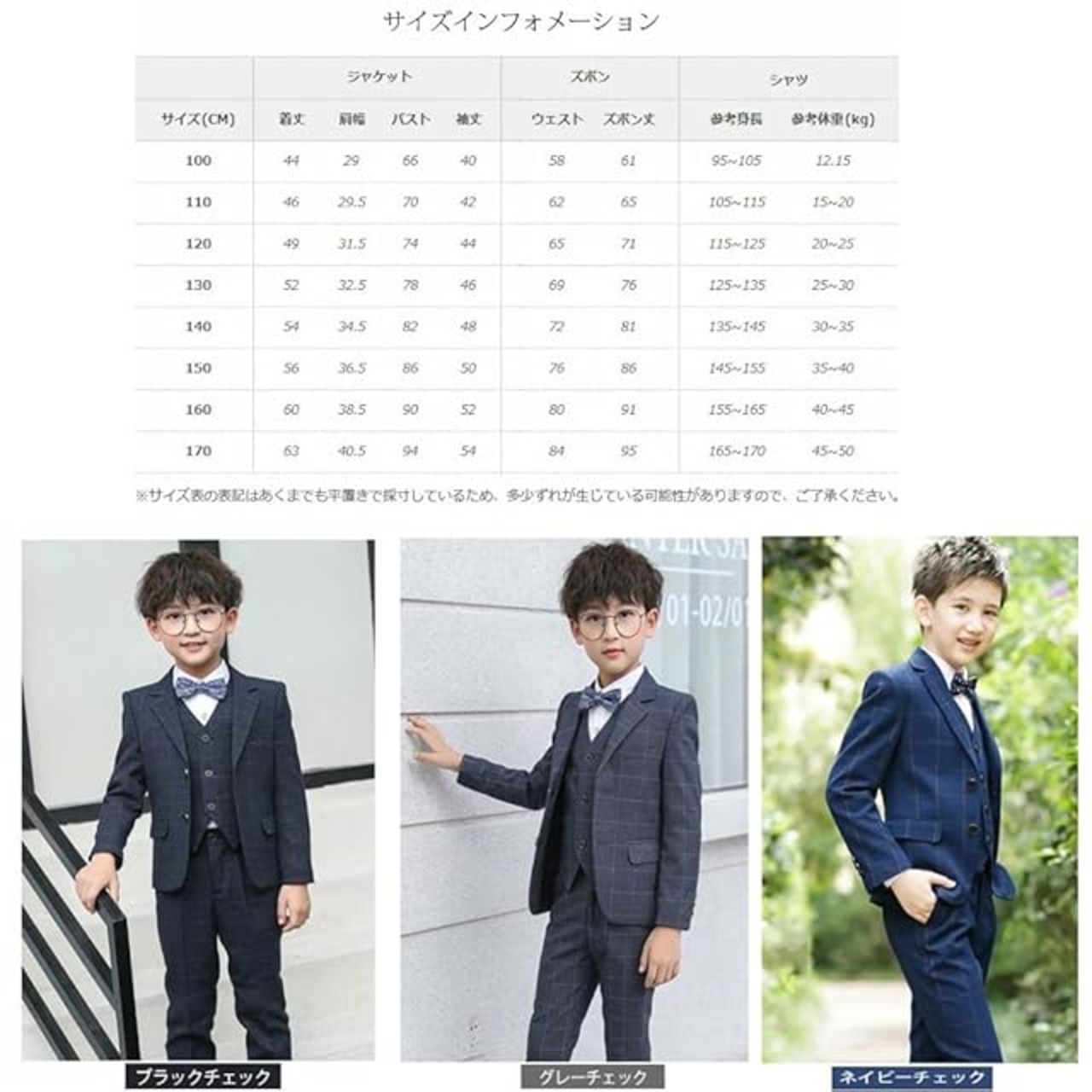 [alice-eshop] 男の子フォーマルスーツ キッズ フォーマル 子供服 チェック柄 ジャケット、ベスト、シャツ、ズボン、蝶ネクタイ 、ベルト 、ネクタイ 7点セット かっこいい 入学式 七五三 卒業式 90-170