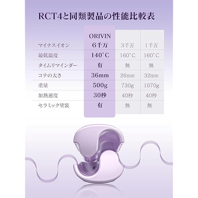 【60秒でカール完成·挟むだけで巻ける】ORIVIN ウェーブアイロン RCT4は2024年最新デザインを採用し、超簡単に使用可能!挟むだけで美しい波巻きヘアが手に入ります。従来型のカールヘアアイロンより操作が簡単になり、特別な技術は必要ありません。初心者の方や不器用な方でも可愛い波巻きを作れます。また、この製品はPTC加熱技術を採用しており、30秒で加熱完了。忙しい朝でも大活躍です!