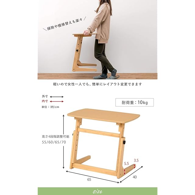 萩原(Hagihara) サイドテーブル ソファテーブル パソコンテーブル PCデスク 【4段階高さ調節】 勉強 在宅勤務 テレワーク 横揺れ軽減 幅65 ナチュラル VT-7973NA | primer