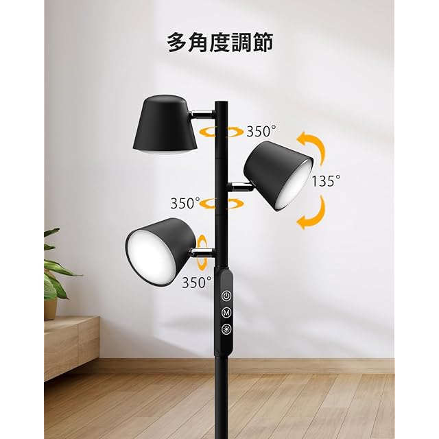 【アップグレード版フロアランプ】Jplednasが提供するLEDフロアランプは、回転可能な3灯デザインを採用し、ランプヘッドは350°回転し、135°垂直に翻転できます。各LEDライトは独立してコントロールと調光が可能です。他のリビングルームライトよりも広い照明角度を持ち、シンプルな流線型デザインがあなたの家にスタイリッシュで現代的な雰囲気を添えます。オフィス、家庭、寝室、書斎などに理想的な装飾照明です。