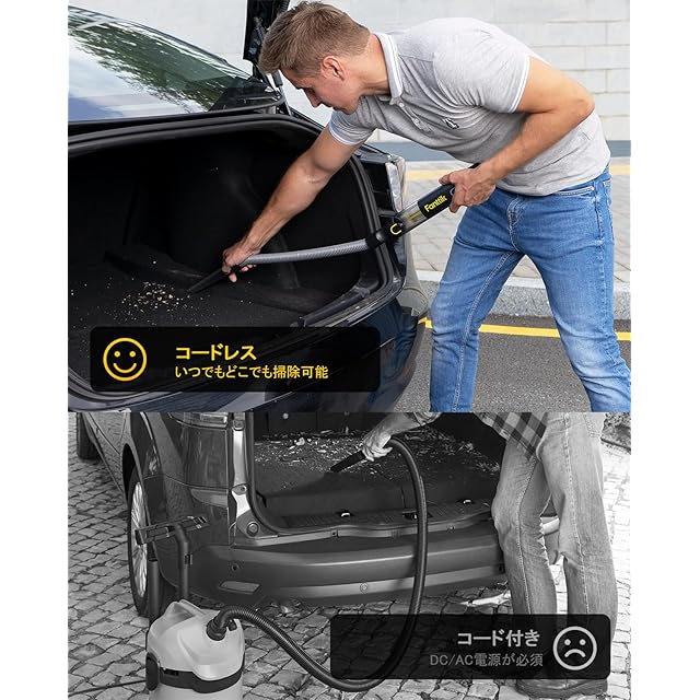 19000Paのハイパワーな車用掃除機: 80000rpmのブラシレスモーターは最大45AW/19kPaの強力な吸引力を提供し、頑固な砂、ほこり、ゴミを簡単に拾い上げます。性能アップした駆動システムは高速で安定な空気の流れを出力し、車用掃除機の出力を連続的にピークな吸引力にします。2つの吸引モードがあり、エコモードは40分間、最大モードは13分間連続使用できます。車の細かい部のお手入れ、ホームの掃除、アウトドアでの使用に適用です