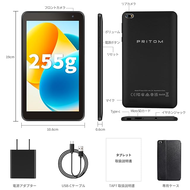 2024年新登場 PRITOM TAB7 タブレット 7インチ、250グラムぐらい軽量で、出張時や旅行先でもオッケーです。