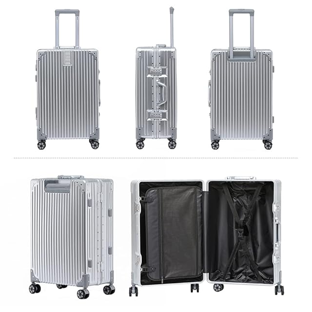[Vilgazz] スーツケース キャリーケース アルミフレームタイプ 耐衝撃 キャリーバッグ 軽量 キャリーバック TSAロック 360度回転 静音 ダブルキャスター 大型 大容量 旅行 出張 Mサイズ 4-7泊 58L シルバー | primer