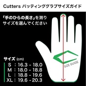 サイズ(測定位置:手のひらの長さ) S 16.3〜18.0cm M 18.0〜18.8cm L 18.8〜19.6cm XL 19.6〜20.3cm