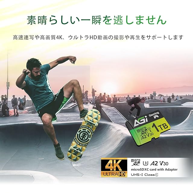 1TBメモリーカードはUHS-I U3 V30規格に準拠しており、高速連写や高画質4K・UHD動画の録画と再生に対応します。Androidスマホ、カメラ、ドローン、GoProなどのアクションカメラに最適です。(お使いのデバイスが1TBメモリーカードに対応しているかをご確認ください。)