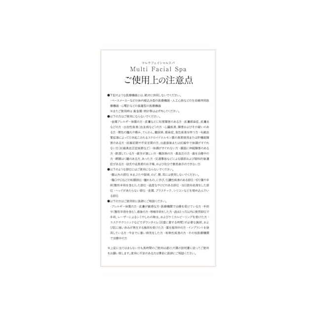 美顔器の単品購入にはガイドブックはついておりません。 emsが弱いと感じられる場合は、保護フィルムを剥がしているか確認して下さい。剥がしている場合は、すぐに感謝状に記載のBeautickサポートまでご連絡下さい。 充電に関しては、必ず、付属のケーブルの使用と充電器の出力にお気をつけ下さい。定格電源:DC-5V 海外でのご使用は交流100~220Vの範囲内でご使用下さい。保証の対象は、日本国内での使用に限ります。