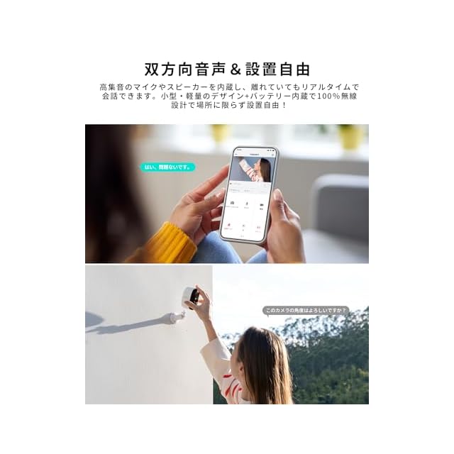 【双方向通話・130°広角撮影・アレクサ対応】 防犯カメラ屋外ソーラーは高集音のマイクとスピーカーが内蔵され、カメラ映像によって気軽に顔が見られて音声をやり取ります。外出時庭に遊ぶ子供の様子を確認して気楽に会話でき、心配の気持ちが少し軽くなりました。130°超広角を搭載し、玄関、庭や駐車場のような広い場所をカバーできます。料理とか家事中にAlexaに話しかけるだけで屋外のカメラの映像をリアルタイムで確認して、玄関先の配達員と庭で遊ぶ子供たちの様子を確認できて、忙しいなママが息抜きをしたり、自分時間が増えます。家事や仕事と育児の両方が楽になります。