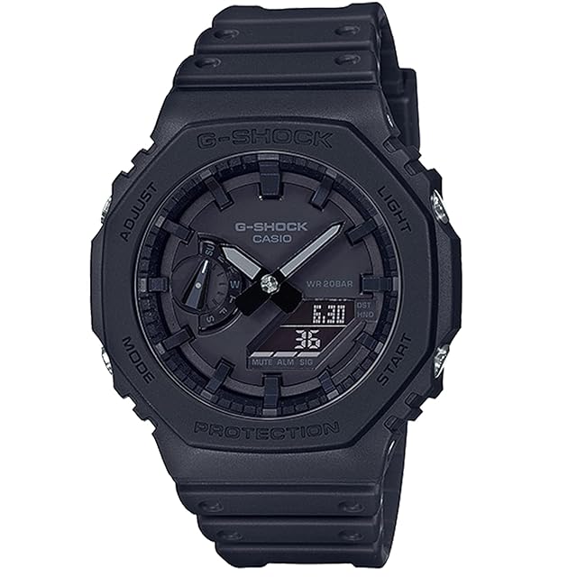 今回のモデルは、初代モデル“DW-5000C”にも採用された“八角形フォルム”を継承。タフな構造はそのままに無駄を省いたシンプルなデザインのコンビネーションモデルを開発しました。更にケース素材には、高剛性を発揮するカーボン繊維入りファインレジンを使用し、G-SHOCKコンビネーションモデルの中で最薄となる、厚さ11.8mmを実現しました。G-SHOCK初代モデルのDNAを受け継ぎながら、デザイン、フォルム、サイズに徹底的にこだわった、G-SHOCKの次世代スタンダードを担うNewモデルの登場です。