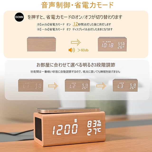 【QIワイヤレス充電】:スマホ充電機能Qi受電技術を採用して、Qi対応端末またはQI対応カバーを付けた携帯電話を本体上に置くだけで充電できるワイヤレス目覚まし時計です。ご注意:購入する前に、スマホがQIワイヤレス充電機能を対応できるかどうかを確認してください。2mm以上のスマホケースを使用すると充電できない場合があります。Qiワイヤレス充電機能はUSBケーブルを接続して対応できます,5V 2A以上のアダプタを購入する必要があります,5V 3A アダプター (別売り) を使用すると、充電が速くなります。AirPodsとApple Watchは充電できません。(Qi ワイヤレス充電コンポーネントのブランド: N/A、番号: LZX01021)