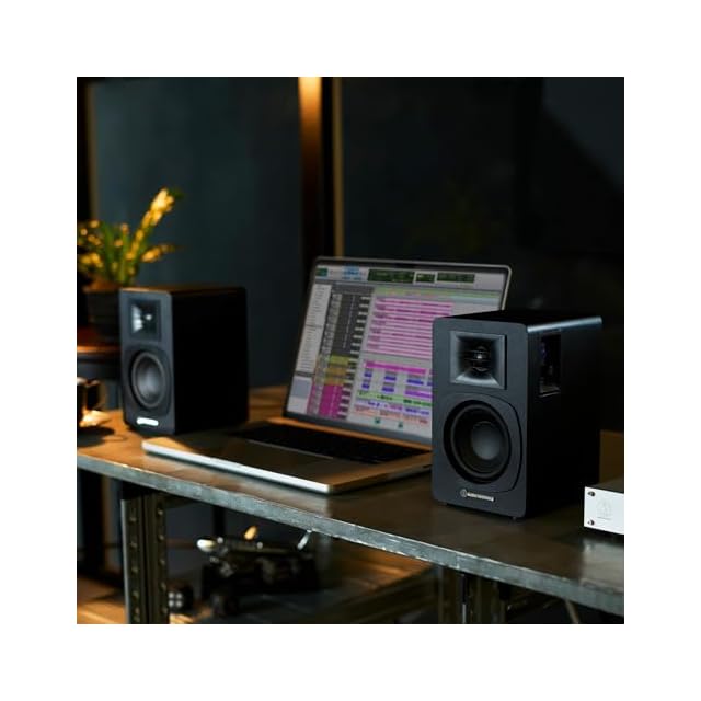 エンクロージャーには堅牢性のある MDF 材、どんな部屋にも合うミニマルなデザイン:スピーカー自体からの不要な振動を抑制するため、エンクロージャー素材には堅牢性のある MDF材を採用しています。部屋のどこにおいても馴染みやすい、シンプルな外観を追求。電源ボタンやボリューム、 LED を側面に設置することでミニマルデザインを実現しました。