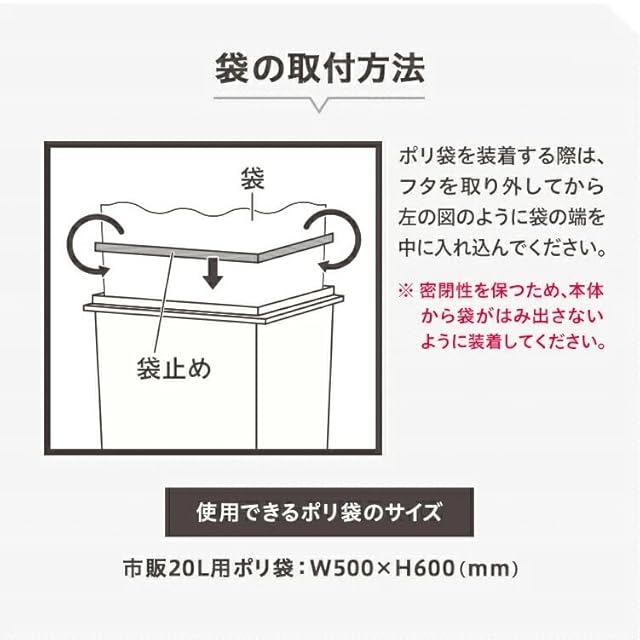 本体・フタ・フタ枠・ポリ袋止め・台座=PP、バネ=ステンレス鋼、キャスター=PP/PA