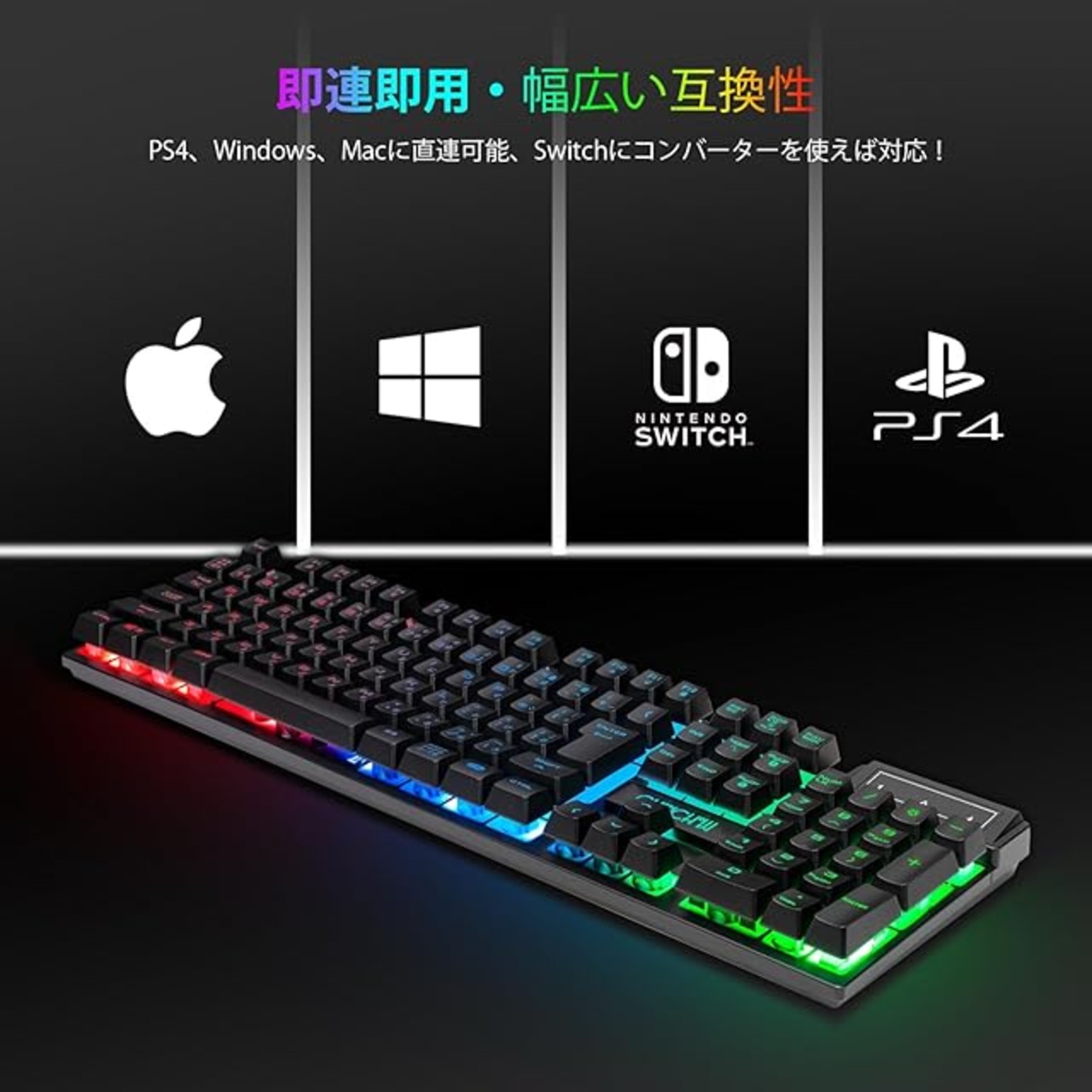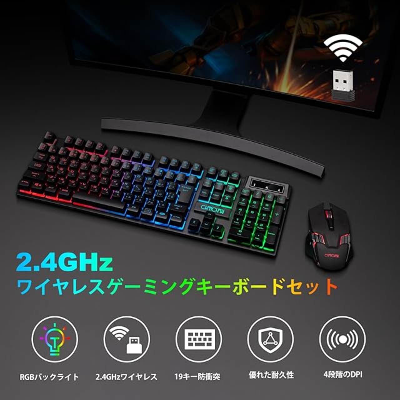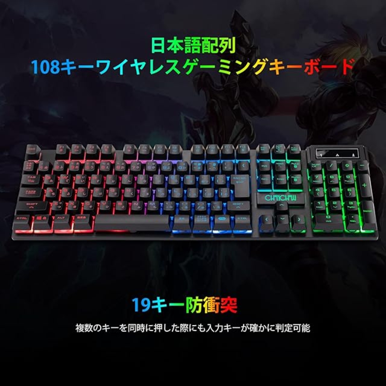 ワイヤレスゲーミングキーボードマウスセット 108キーLEDバックライトRGBキーボー 2.4GHz 無線 充電式 日本語配列 19キー防衝突 4段階DPIマウス ps5 ps4 PC/Windows/Mac対応 日本語説明書付き G220(2.4GHz無線)
