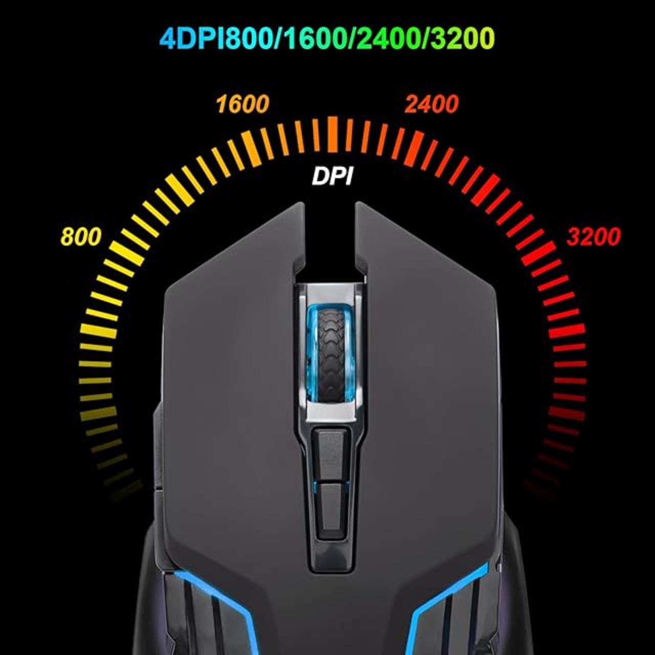 【LEDゲーミングマウス付き·4段階DPI】ゲーミングマウスは6つの多機能ボタンであり、7色の呼吸ライトを搭載します。マウスのDPIボタンを押して、800/1600/2400/3200DPIの4段階に調節することができます。ゲーム中ならDPIを上げ、仕事中ならDPIを下げり、操作が簡単にできて使い心地も快適です。