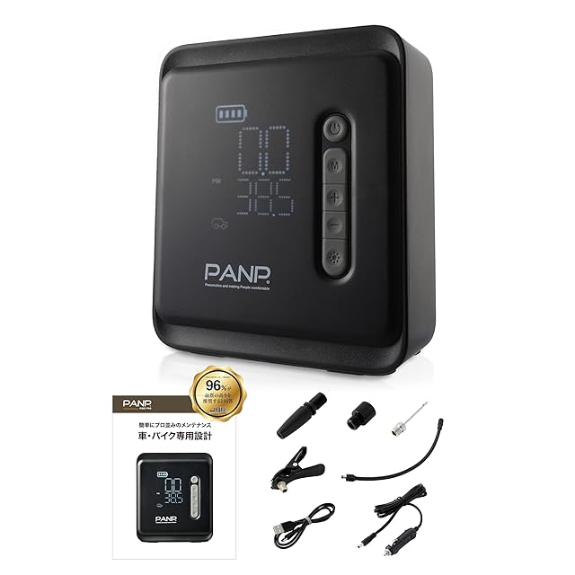 空気入れをもっと楽に、もっと手軽に。PANP(パンプ)が「空気入れの手間をゼロにする」をコンセプトに開発したのが、スマート電動空気入れ「RIDE PRO」です。 空気入れは、従来「時間も労力もかかる面倒な作業」でしたが、PANPならボタン1つで完了します。 【車やバイク、自転車、ボールなど】 あらゆる用途に対応した高性能コンプレッサーを搭載し、大型の車やバイクのタイヤでも約30秒という驚異的な速さで充填可能。 高圧力(最大150PSI)を実現し、正確な空気圧管理が可能です。 複数のバルブ(英式、米式、仏式)に完全対応し、自動車・バイク・自転車からボールまで幅広く使えます。 【こんな方に最適です】 - 車・バイクのメンテナンスを素早く簡単にしたい - 出勤前や外出先でのタイヤ管理に手間をかけたくない - 空気入れに苦手意識があり、簡単に操作できる商品を探している 【主な特徴】 - 「タイヤの種類を問わず使える」全バルブ対応(英式/米式/仏式) - タイヤの空気が適正圧に達すると「自動停止」 - 最大空気圧【150PSI】(大型車両でも迅速に対応) - 空気圧表示単位を4種類から選択可能(PSI, BAR, KPA, Kg/cm²) - 設定した空気圧を用途ごとに自動保存する「メモリー機能」搭載 - 付属品なしでも丁寧なサポート対応(日本メーカー1年保証) - 動画でわかる「日本語説明書」付き(初めてでも迷わず使える) 【安心の日本メーカー品質】 PANPは、日本企業ならではの品質基準で、厳しい安全性・耐久性テストをクリア。 製品には安心の【1年間メーカー保証】が付き、万が一の際もサポートいたします。 「RIDE PRO」なら、いつでも手軽に安心の空気圧管理が可能になります。 日常のメンテナンスをもっと楽に、そして安心・快適な毎日をお届けします。