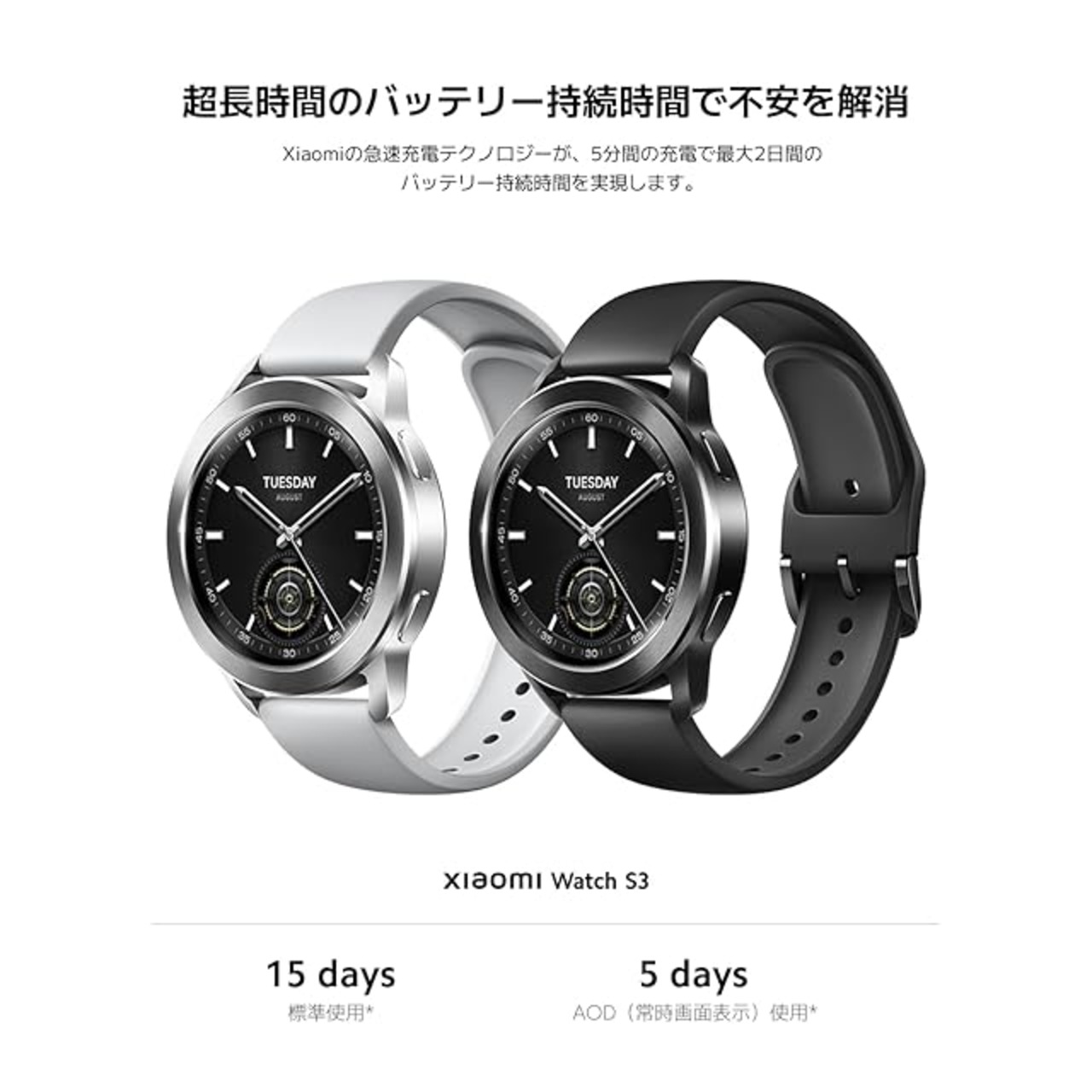 シャオミ(Xiaomi) スマートウォッチ Xiaomi Watch S3 ベゼルデザイン 1.43インチ有機ELディスプレイ Bluetooth通話対応 ジェスチャー制御 150種類以上のスポーツモード 15日間連続稼働 Xiaomi HyperOS搭載 Alexa対応 ブラック
