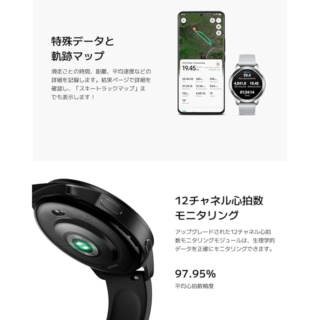【アップグレードされた150種類以上のワークアウト・スポーツモード】屋内外でのランニング、ウォーキング、サイクリングなど、150種類以上の様々なプロスポーツモードに対応しております。また、Xiaomi Watch S3は新たにスキーやスノーボードなどのウィンタースポーツにも対応しました。進化したデュアルセンサーの搭載により運動検出機能が向上し、より正確なモーション検出ができます。