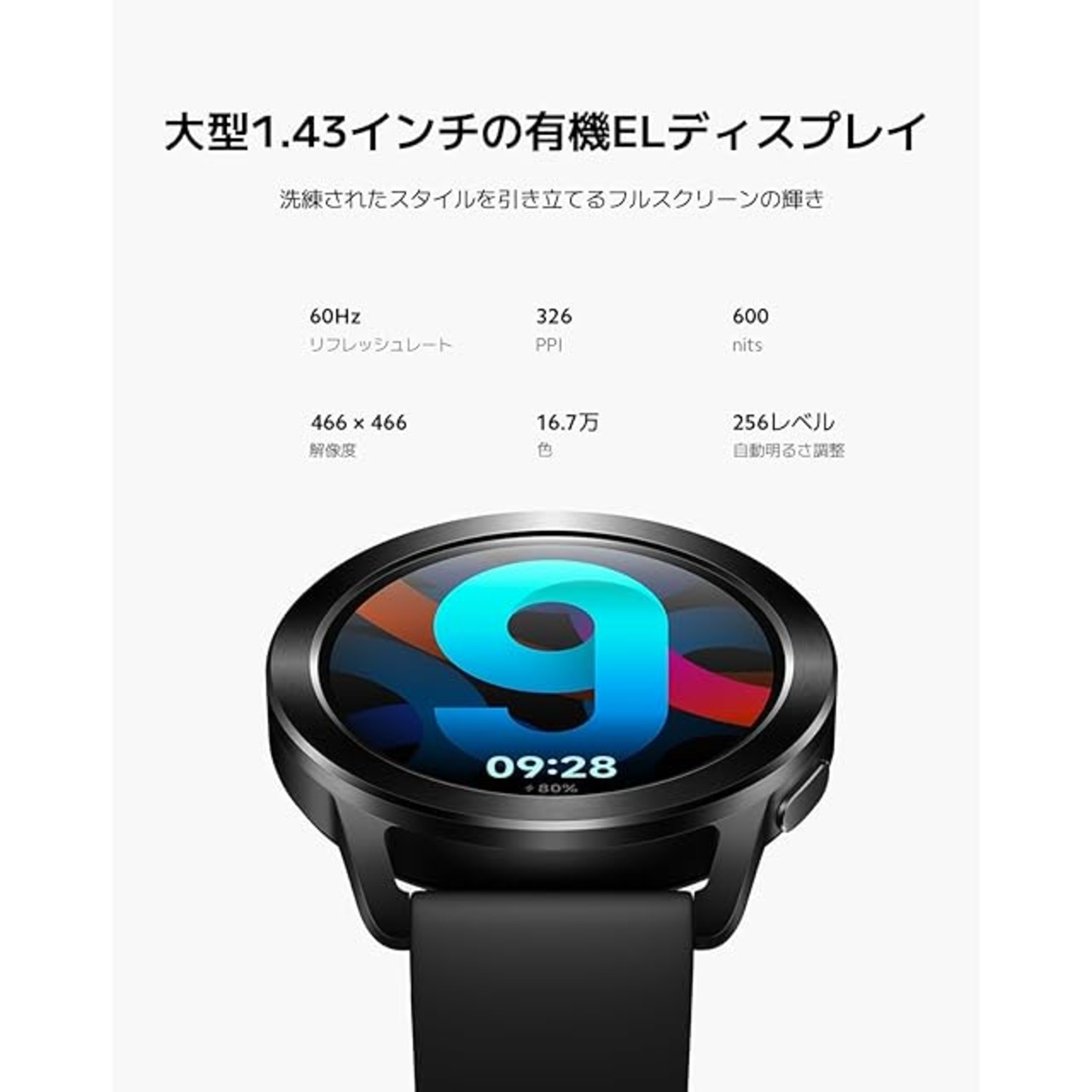 【洗練されたスタイルを引き立てる上質なディスプレイ】1.43インチの有機EL(AMOLED)ディスプレイは60Hzの高リフレッシュレートと鮮明な画質を特長としています。スタイリッシュなベゼルは落下などによる傷から画面を保護します。それらはシームレスに一体化されており、高級感を演出しています。