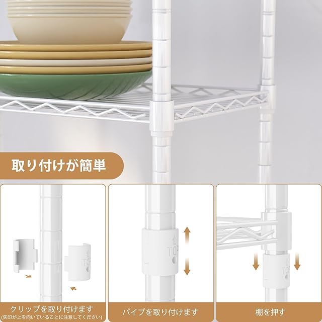 【おしゃれなデザイン】ホワイトのスチールラックは、おしゃれなインテリアにもマッチ。お部屋の雰囲気を壊さず、スッキリとした印象を与えます。