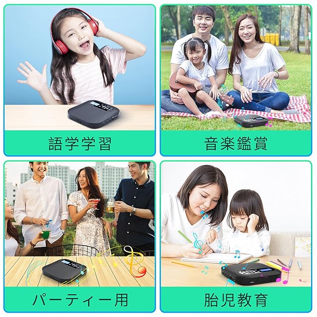 ポータブル式CDプレーヤーはCD、MP3 CD、CD-R、CD-RWなどのオーディオファイルと互換性があり、リラックス用、語学学習用、胎児教育用など、様々なシーンにで大活躍しています