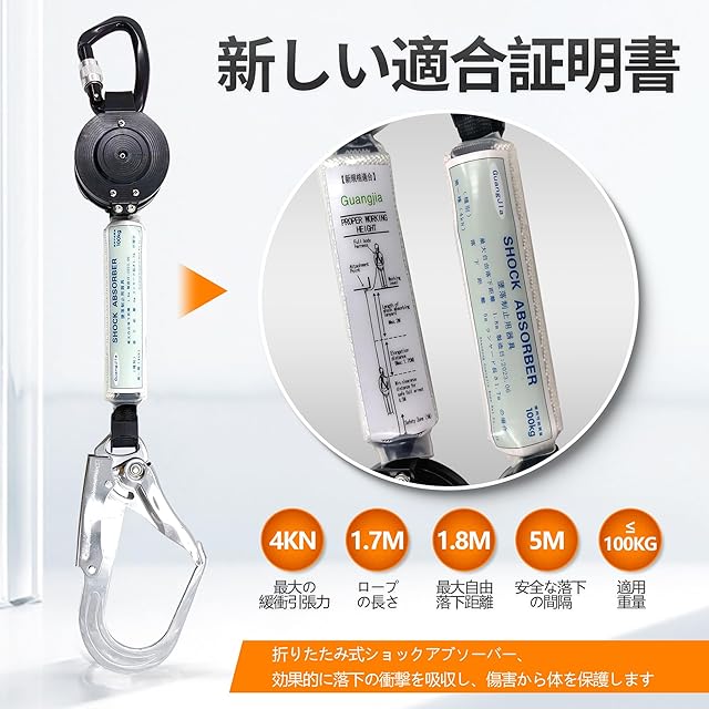 【に引き出し可能な速度差式安全ロープ】より便利に使用できます。ウェビングはポリマーウェビングで、耐荷重能力は最大500です1800kg。