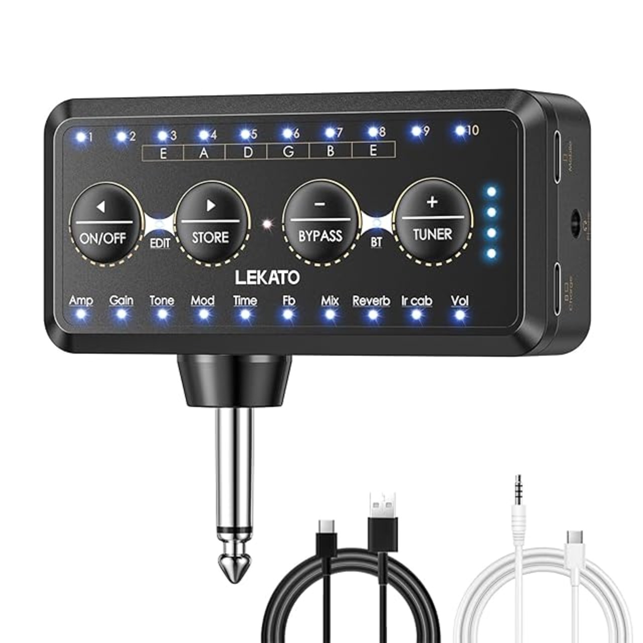 ギターヘッドフォンアンプ Bluetoothミニプラグ 10つのアンプモデル チューナー付き エフェクト付き LEKATO インレイマルチエフェクトディレイリバーブコーラスオーバードライブ 充電式 エレクトリックギター用 USBエクスポート | primer