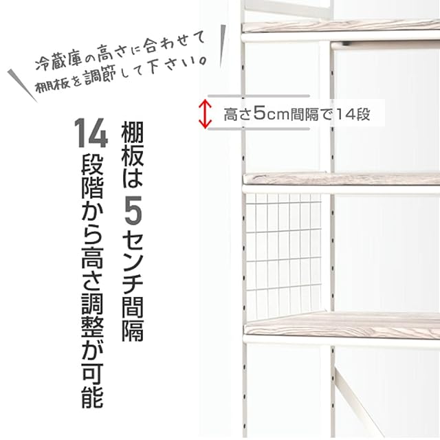 山善(YAMAZEN) レンジラック (冷蔵庫ラック) 小型冷蔵庫対応(幅59.5×奥行41.5×高さ180cm) 棚板高さ調節可 フック4コ付き レンジ台 ラック 組立品 ブラック RUR-18(OAK/SBK) | primer