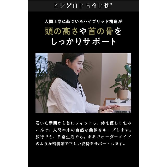 人間工学に基づいたハイブリッド構造が頭の高さや首の骨をしっかりサポート<br> 巻いた瞬間から首にフィットし、体を優しく包みこんで、人間本来の自然な曲線をキープします。<br> まるでオーダーメイドのような密着感で正しい姿勢をサポートします。<br> 体にかかる圧力(=負担)を分散し、極上のフィット感を実現しました。<br> 2層のハイブリッド構造が頚部のカーブを自然にサポートし、長時間座り続けても正しい姿勢をキープします。<br> 使用感を保ちながら首元を温める、ベルベット生地のカバーは肌触り抜群です。<br> 背面は独自開発のメッシュ素材。効率よく空気の逃げ道を作り出します。<br> 消臭性のある活性炭を独自配合し、汗のニオイや加齢臭も抑えます。<br> 中材のウレタン素材以外は水・ぬるま湯でそのまま丸洗いが可能です。<br>