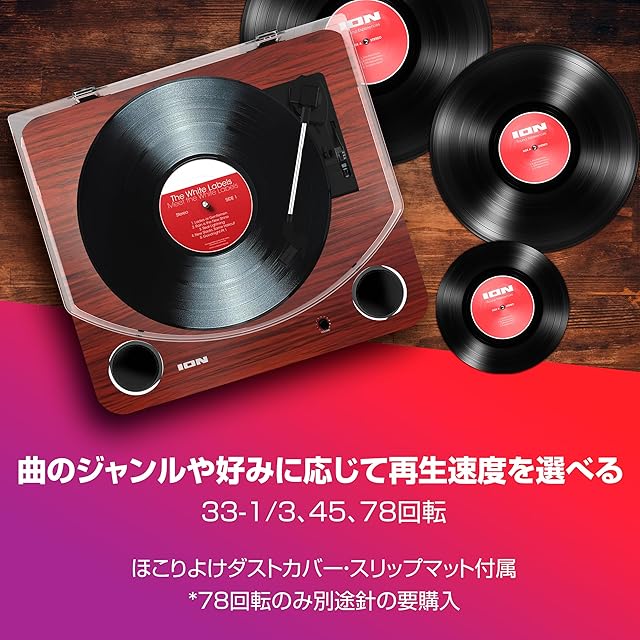 ION Audioレコードプレーヤー スピーカー内蔵 USB ヘッドホン端子 レコードの音をUSB接続でPCに録音可能 33-1/3、45、78回転対応 アイオン Max LP マホガニー | primer