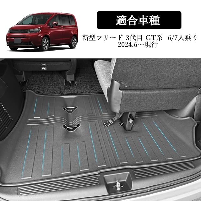 【適応車種】: 新型 ホンダ フリード(Honda FREED GT系) 3代目 GT系 GT1 GT2 GT3 GT4 GT5 GT6 GT7 GT8(2024.6~現行)。【ご注意】フリード ラゲッジマットは大きいため、折りたたんで発送します。到着後、平らな場所に数日間置いていただくか、ドライヤーで温めると元の形状に戻ります。