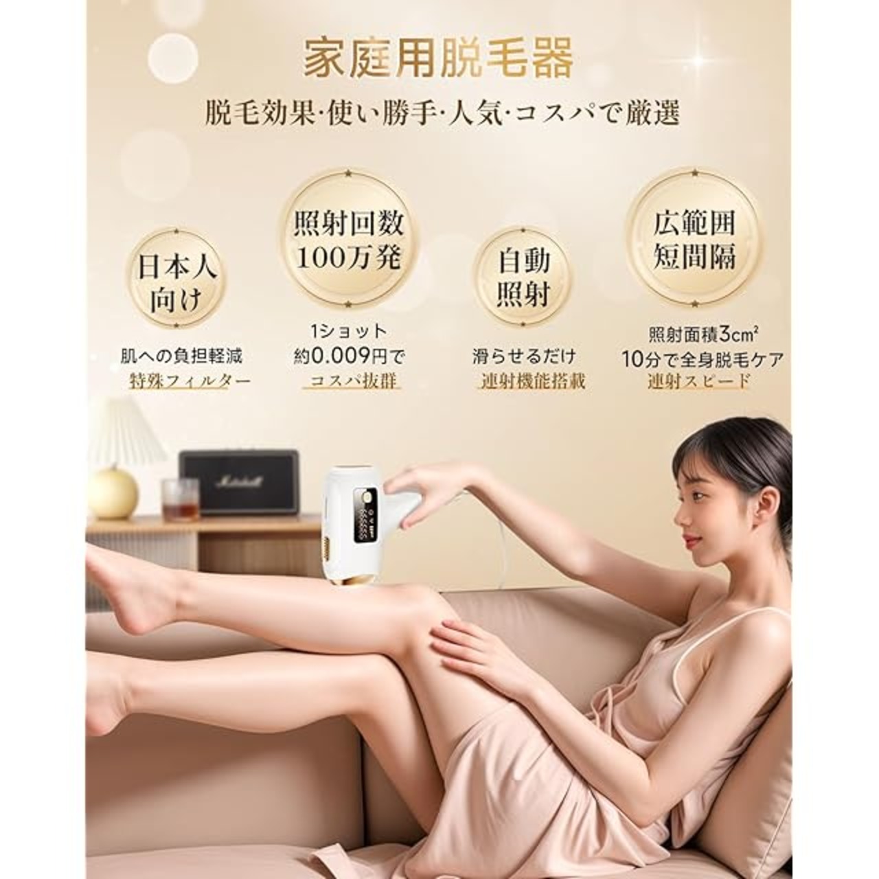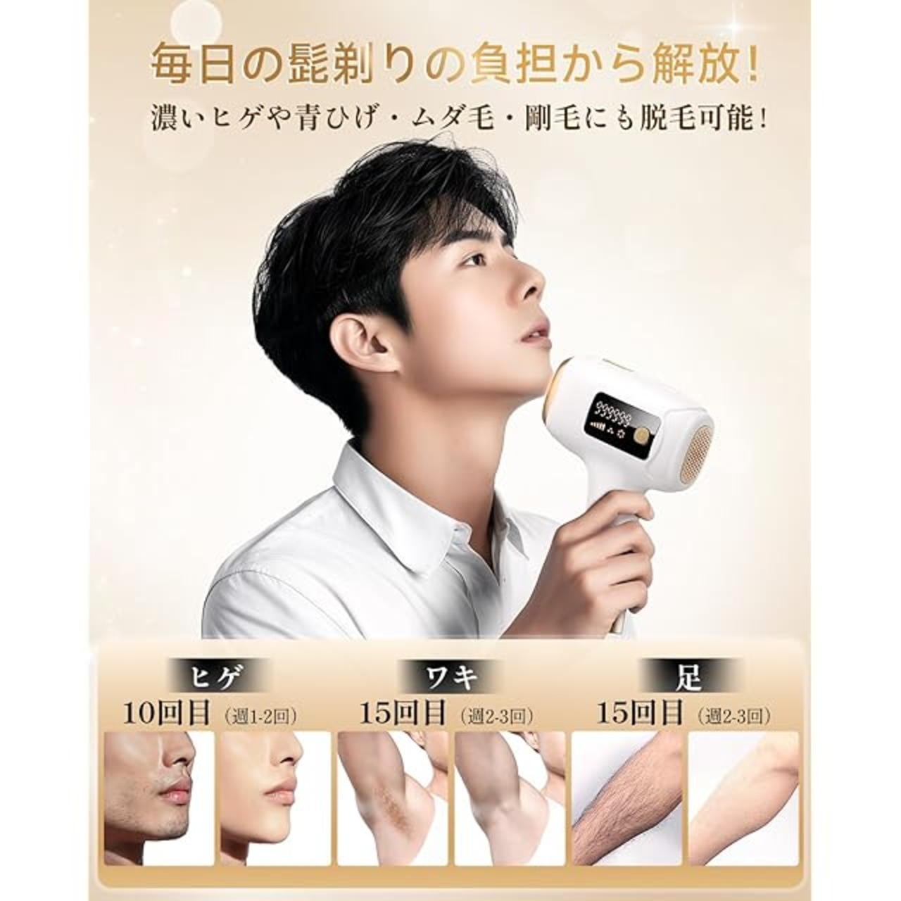 脱毛器 サロン級HIPL光 メンズ レディース 家庭用脱毛器 VIO対応 無痛 サファイア冷却 脱毛 手動/自動照射 高出力20J 100万発 5段階 家庭用 男女兼用 髭 全身ムダ毛処理 美容器 P9 (ゴールド)
