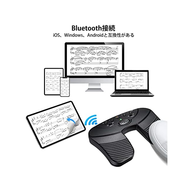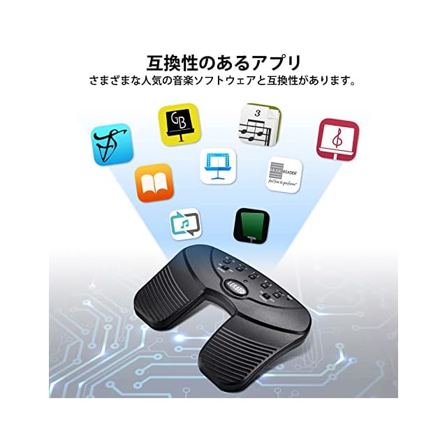 【APPとの幅広い互換性】LEKATO ページめくりフットペダルは、さまざまなプラットフォームやシステムと互換性があります。 さまざまな音楽アプリと互換性があります: OnSong、piaScore、その他の市販の人気音楽ソフトウェア。 互換性のないアプリ: nkoda 。