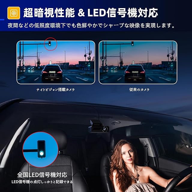 ✅【170°超広角撮影&全国LED信号機対応】前方170度、リア150度の広角レンズが採用されているドライブレコーダーです。今まで見えなかった車両の前方後方の広い範囲を記録できます。F1.5+F2.0の広角レンズが採用されており、色彩鮮やかでリアルな映像を録画できます。ドライブレコーダーのフレームレートが従来型の25fpsから27.5fpsに変更されたので、LED信号と同期してしまうことによる信号機の点滅/消灯現象も防止できます。