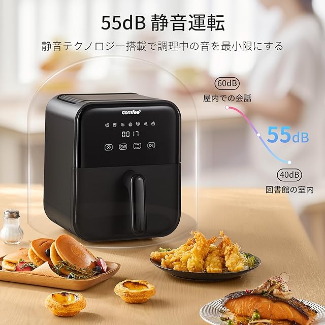 Comfee' ノンフライヤー 4L 大容量 ノンオイル 電気 エアフライヤー 揚げ物 ポテト 7つのメニュー設定 家庭用タイマー 温度調節 自動電源オフ 自動調理 LEDディスプレイ PSE認証済 ブラック | primer