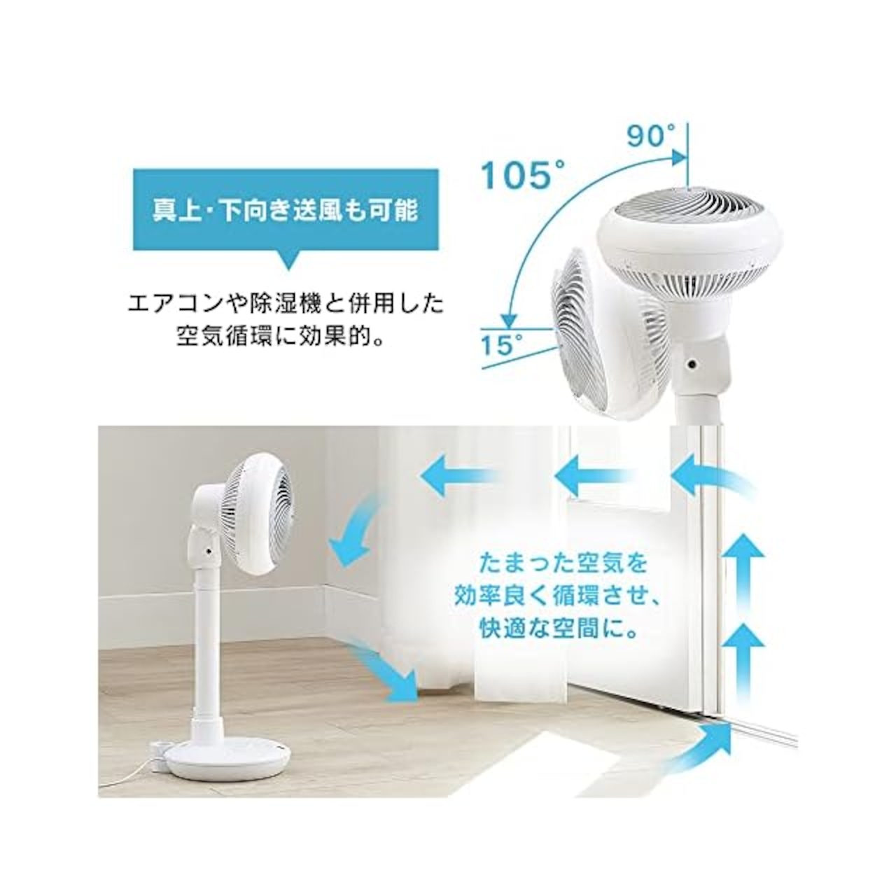 【パワフル送風】サーキュレーター+扇風機の1台で2役。DCモーター搭載だから風を部屋の隅々まで送ることができる。