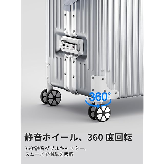 【軽量で丈夫なアルミフレーム製のキャリーケース】本体素材は3層構造のPCポリカーボネート樹脂製で、表面は厚手で傷がつきにくいハニカム構造。フレームはファスナーなしのアルミフレーム製で、全体的に軽量で持ち運びやすく、あらゆる身長の男女に適しています。全輪360°回転サイレントダブルキャスターを採用し、新世代のTPE素材を使用しており、耐摩耗性、耐久性に優れ、防振、防音効果があり、悪路でも安定した走行が可能です。また、国際標準TSAロックを2つ装備しており、3桁の暗証番号で鍵を開けるため、鍵を紛失する心配がありません。ビジネスマンや個人旅行、家族旅行、親子旅行などに最適で、機内持ち込みも可能です。写真と若干色が異なる場合がありますが、全てスタジオ撮影の素材を使用して撮影しております。
