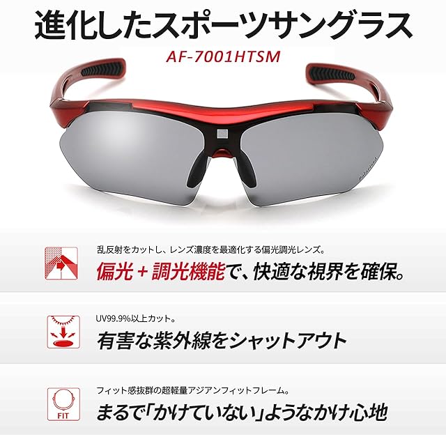 偏光サングラスにまぶしさ調光機能をプラスした偏光調光スポーツサングラス。「メガネの聖地」福井県の設計ノウハウを凝縮した超軽量アジアンフィット設計で、かけていることを忘れる程のフィット感。アクティブシーンを快適にお楽しみいただけます。