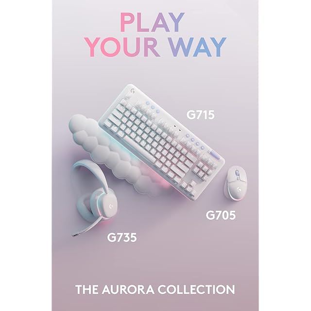 Auroraコレクションから: ゲームギア を組み合わせて楽しめます。G713 キーボード、G735 ヘッドセット、G705 マウスはどれもインクルーシブなデザインで夢のような美しさです。ゲームアクセサリーは別売りです。