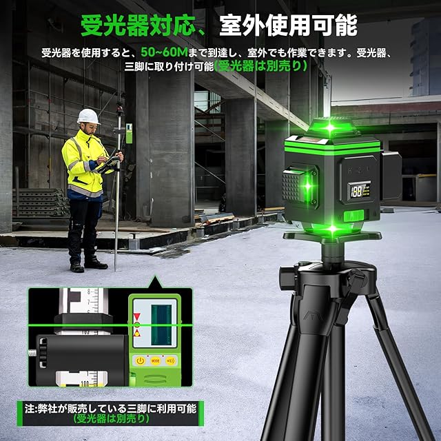✅【受光器対応で室外使用可能】レーザー水平器は、直射日光のあたる場所や照明が明るい場所では、ラインを見にくいことがあります。そんなときは、受光器(別売り)を一緒に買って使うといいです。当社の墨出し器はパルスモードがあり、受光器と組み合わせると、レーザー検出範囲が50~60Mまでになり、室外でも作業ができます。また、丈夫な収納ケースが付いているので、レーザー水平器と一緒にケースに収納できるため、持ち運びが便利で、作業現場に持って行っても利用できます。